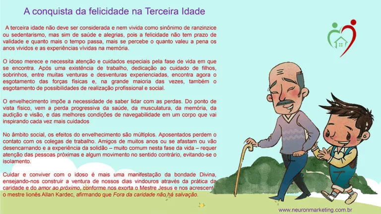 A terceira idade não deve ser considerada e nem vivida como sinônimo de ranzinzice ou sedentarismo, mas sim de saúde e alegrias, pois a felicidade não